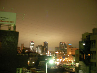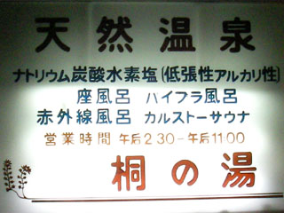 南武線で川崎駅から1つめの尻手駅で降りて、駅前の広い道を川崎方面に向かうと歩道橋があり、対角線に渡って、そのまま進むと徒歩5分ぐらいでビルの中にある温泉銭湯の桐の湯に着きます。