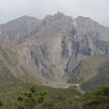 湯之平展望所からは風向きにもよるが、噴煙を見ることはできなかった。ただ溶岩が流れた跡や霧島連峰、開聞岳などすばらしい景色が見渡せる。そして鹿児島市街などの眺望も絶景である。展望所の中にはパネルなども飾ってあった