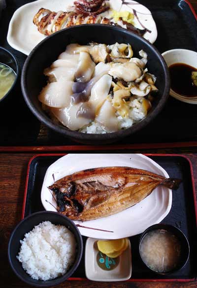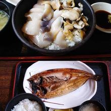 帆立とツブ貝とホッキ貝ののった丼物(800円程度)