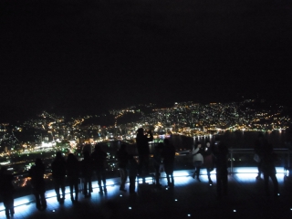 JR長崎駅の観光案内所で申込み、無料シャトルバスで稲佐山に向かいました。ホテルで薦められて訪れたのですが、正直なところ余り期待していませんでした。しかし、本当に綺麗でした。水と光の織り成す美。きらめく夜景という言葉を実感しました。