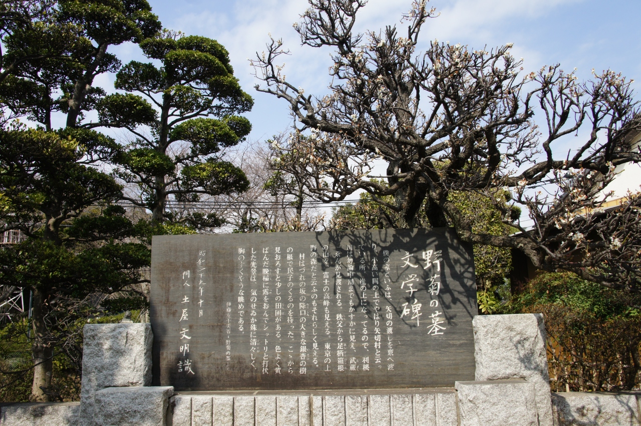 野菊の墓文学碑は、江戸川唯一の渡しである矢切の渡しから歩いて20分ほど。景色の良い高台にありました。矢切りは、伊藤左千夫の小説「野菊の墓」で政夫と民子の淡い恋の舞台。そして、矢切の渡しは、二人の最後の別れの場所です。