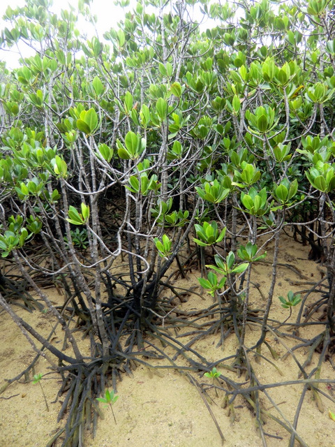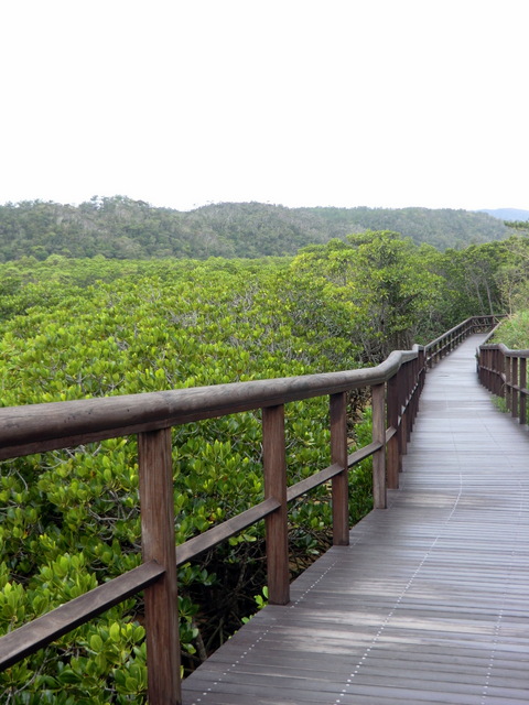 ここでは、オヒルギ、メヒルギ、ヤエヤマヒルギの3種類のヒルギが見られ、また、遊歩道も整備されており、マングローブ(マングローブは、熱帯 - 亜熱帯地域の河口汽水域の塩性湿地に成立する森林のことである・・・資料より)の生い茂る中を自然体験することができます。