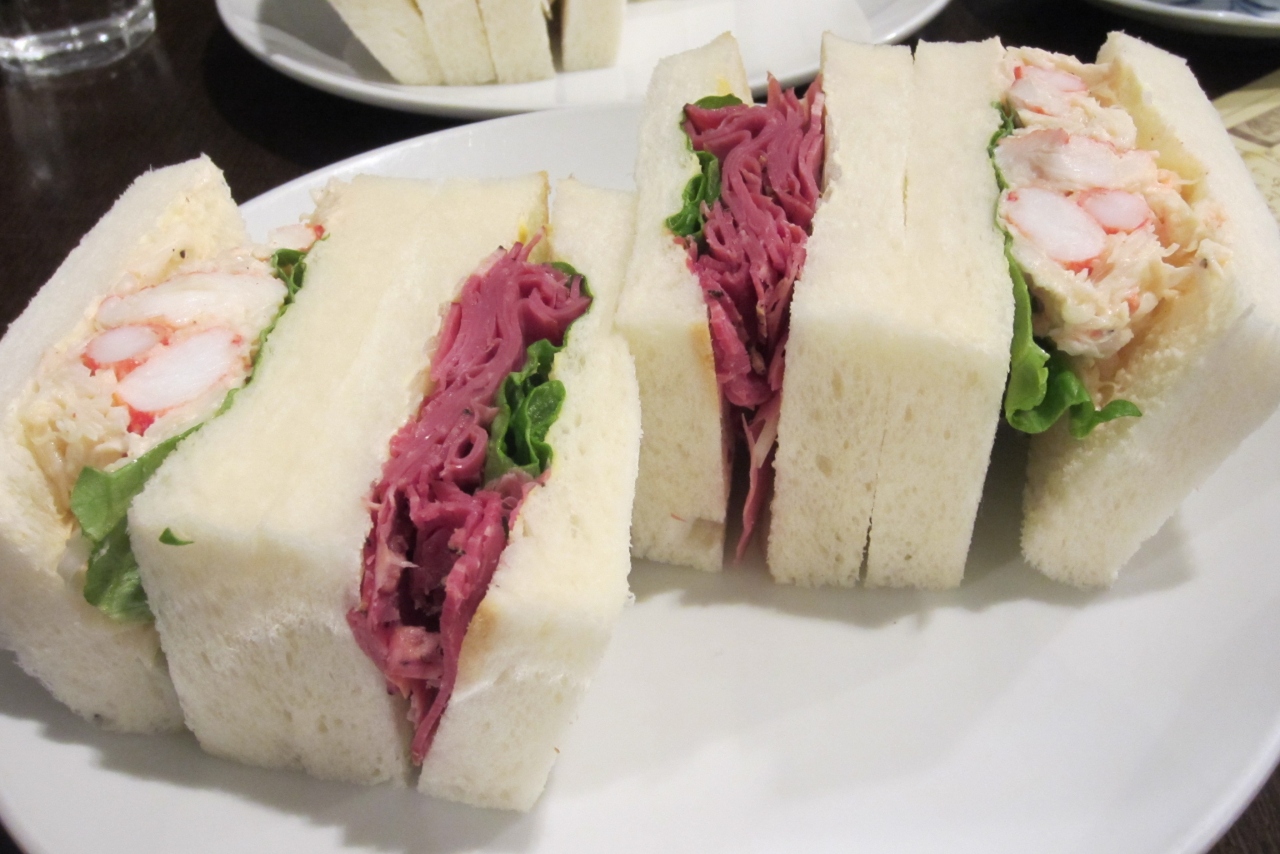 評判の店だったので、どんな味かと試してみました。えびかつ・たらばがに・フルーツ・パストラミビーフの4種類を食べました。たらばとえびかつは味がしっかりして美味しかったですね。これはまた食べたいなあと思います。ビーフは個人的にはいまいちでフルーツの方も前日食べた「きのとや」の生クリームのほうが美味しかったので、これもいまいち。
