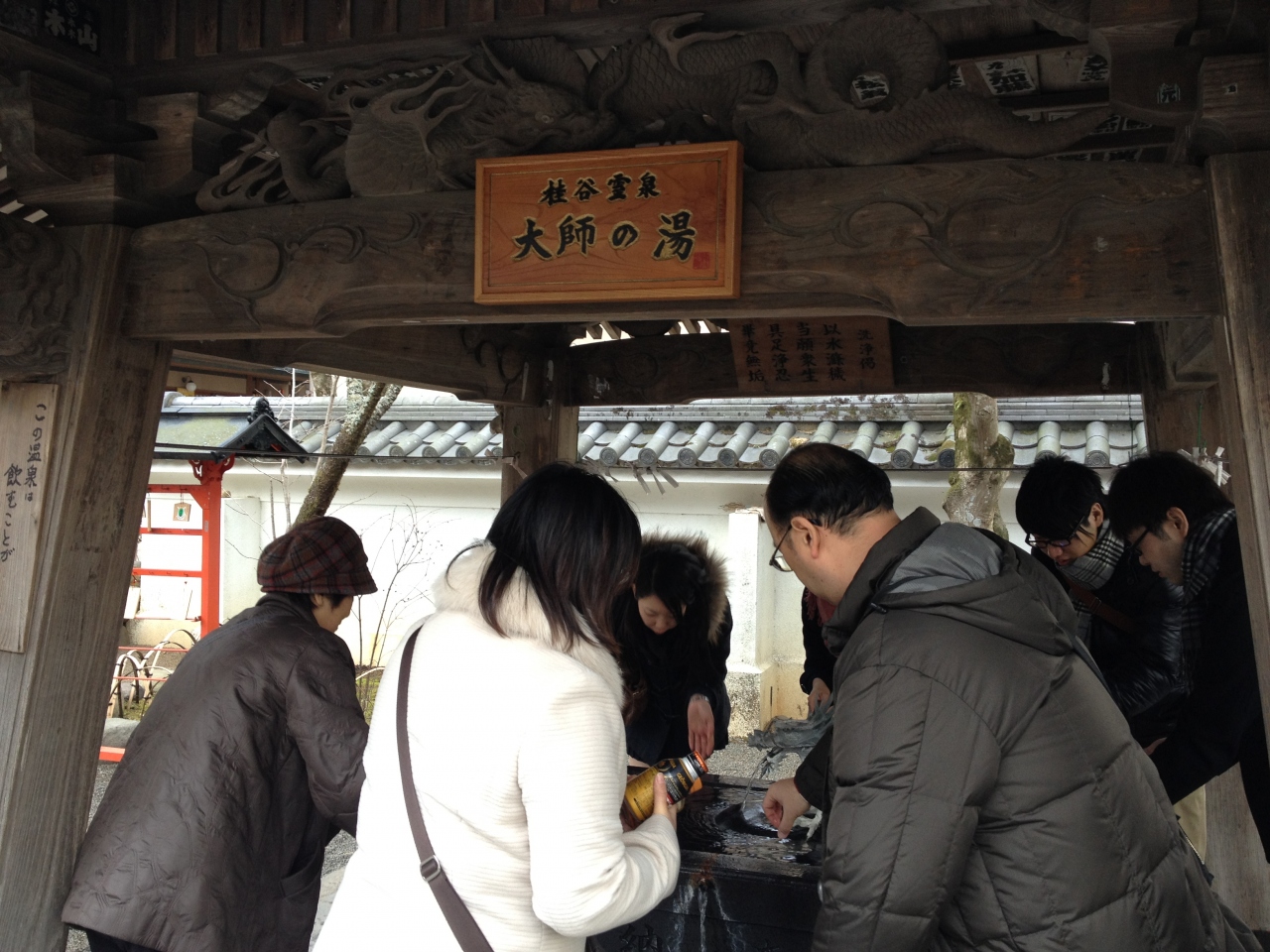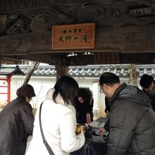 ここの手水舎は温泉を使っていて冬でも暖かい。