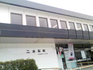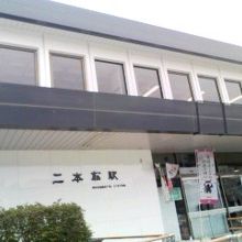 霞ケ城(二本松城)をイメージした石垣風の駅舎で、比較的新しく