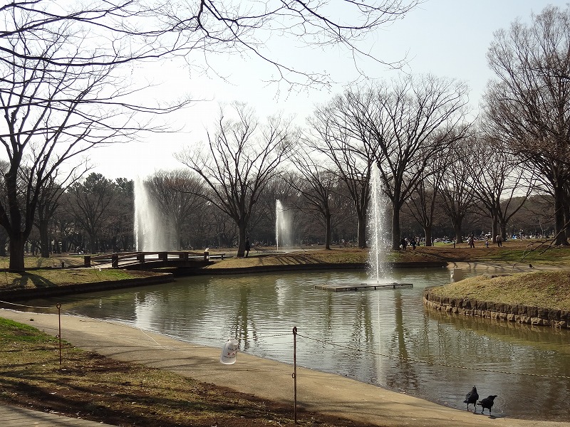 園内中ほどには3基の噴水がしぶきを上げ、水辺では寝ころぶ人や、ベンチで読書する人の姿が見られます。そこを抜けると、大きな芝生の広場。ワンちゃんも入園でき、ドッグランも整備されています。カラスが多いのが残念な点です。