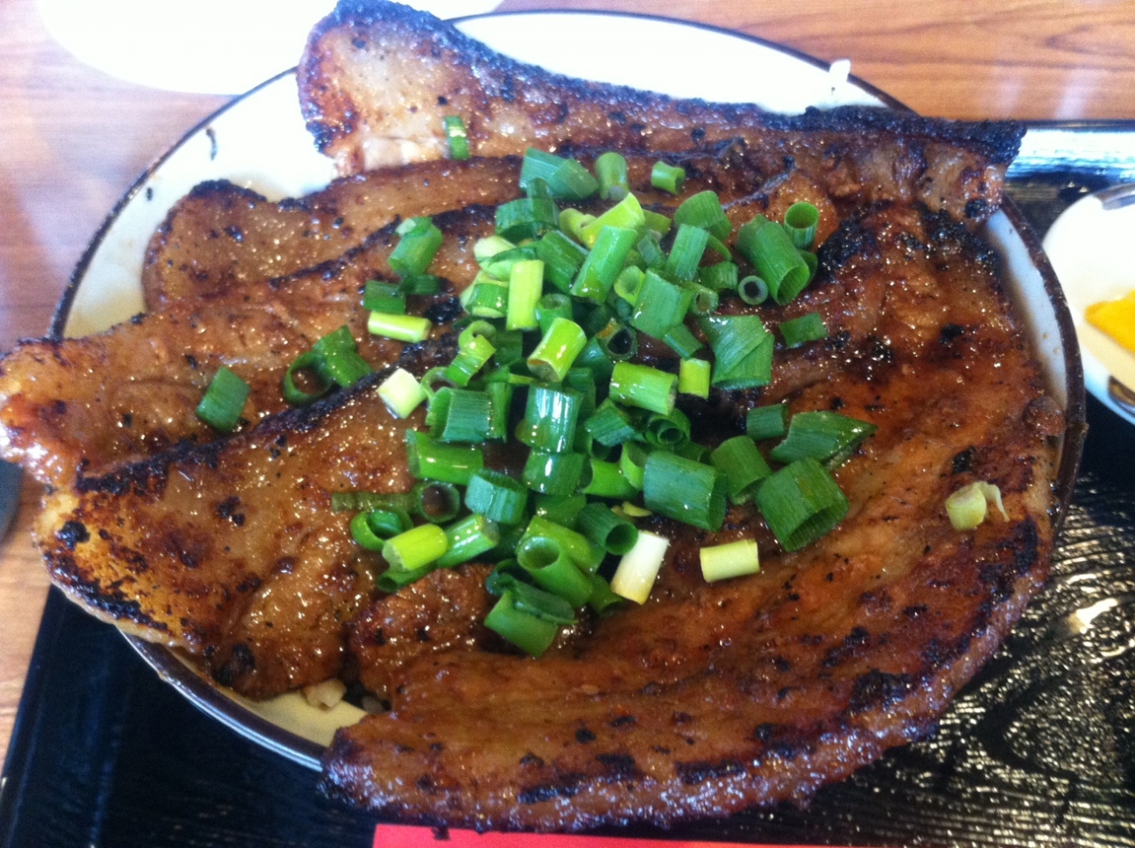 お肉を一口、かなり肉厚でそれが何枚も載っているのでかなりのボリュームがありました。