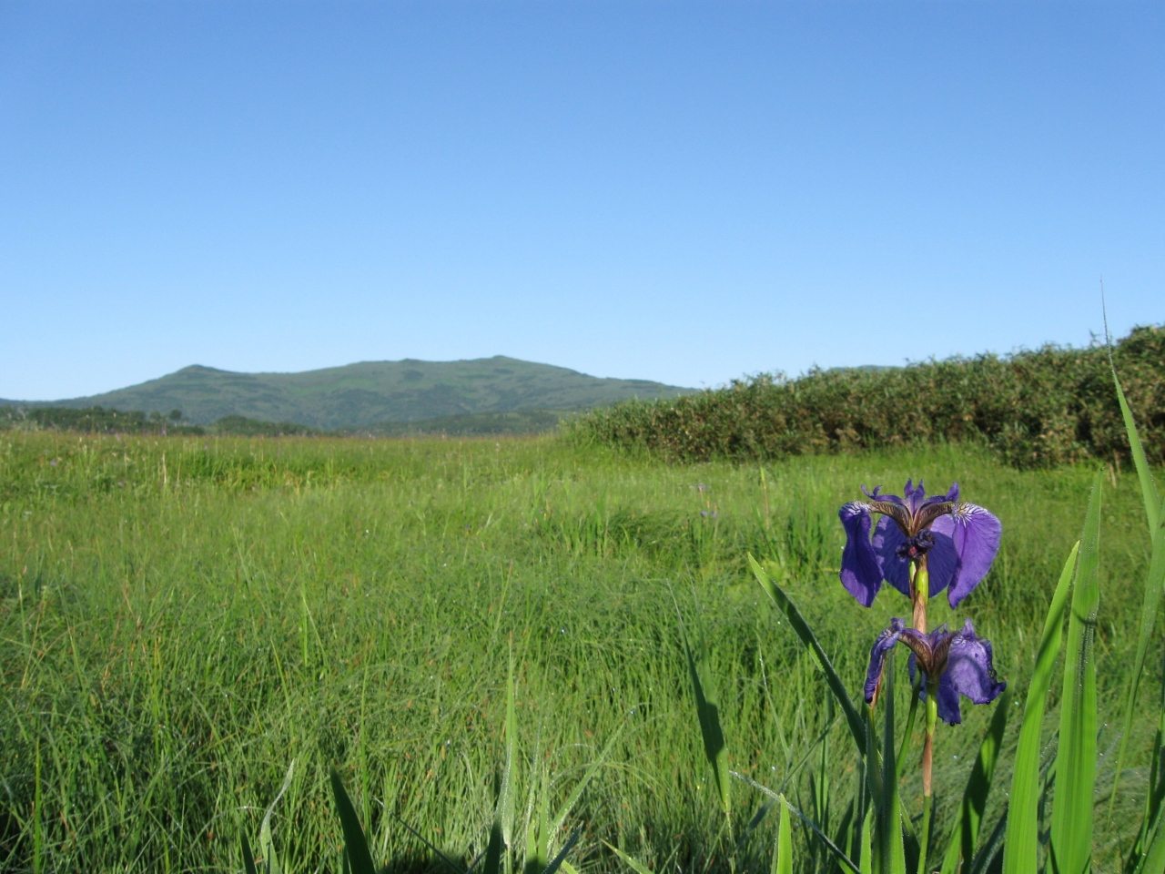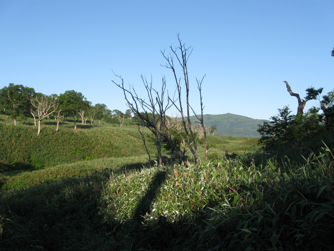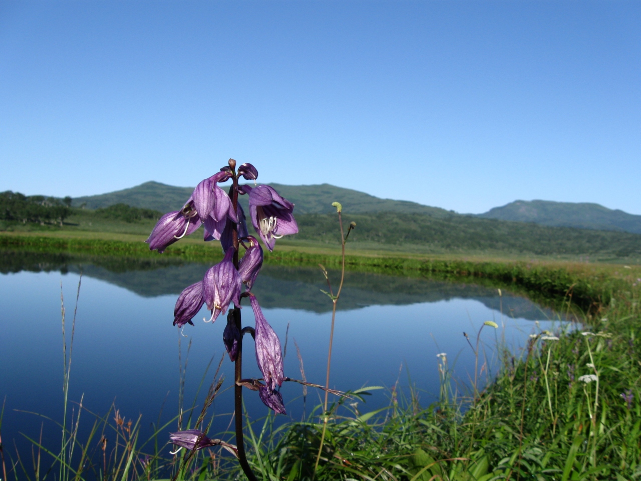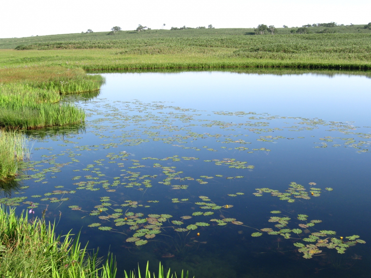 朝一番だったので、他に人がだれも居らず、沼と空の青がとても鮮やかでした。