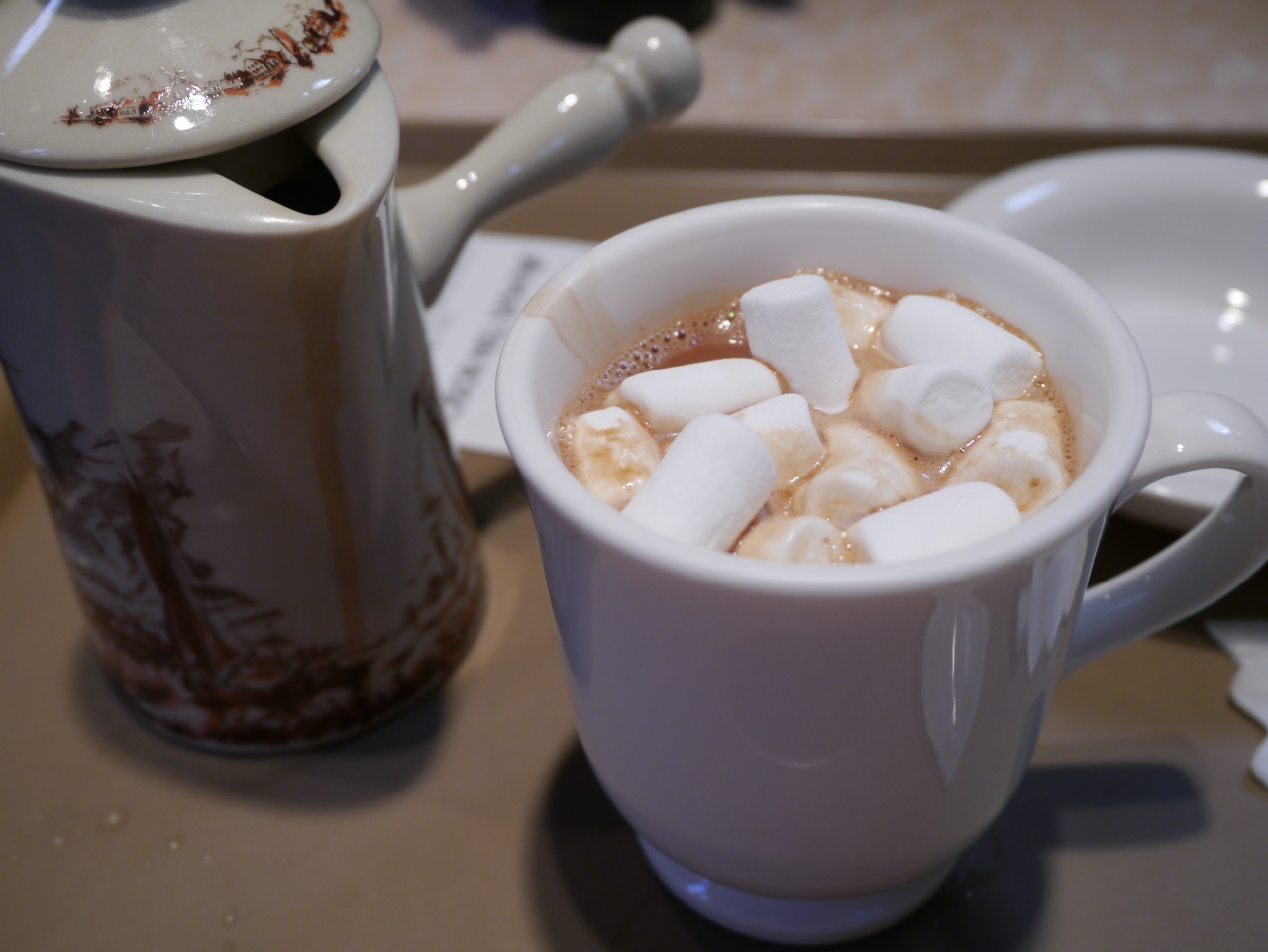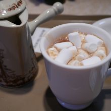 入口にはチョコレートの滝があります。沢山の種類のチョコレートが販売されていてイートインもできます。ホットチョコレートが飲みたくて注文しました。マシュマロをトッピング。ホットチョコレートという名前からの少し濃厚な味を想像していましたがあっさりしたココア?です。マシュマロの甘さでごまかされている感じで期待はずれでした。お土産を買うには良いと思います
