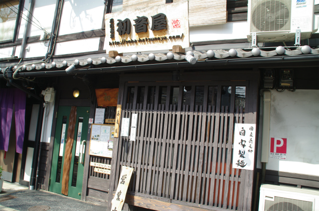 北大路堀川のバス停から直ぐのところに「石臼蕎麦 初音屋」さんがあります。