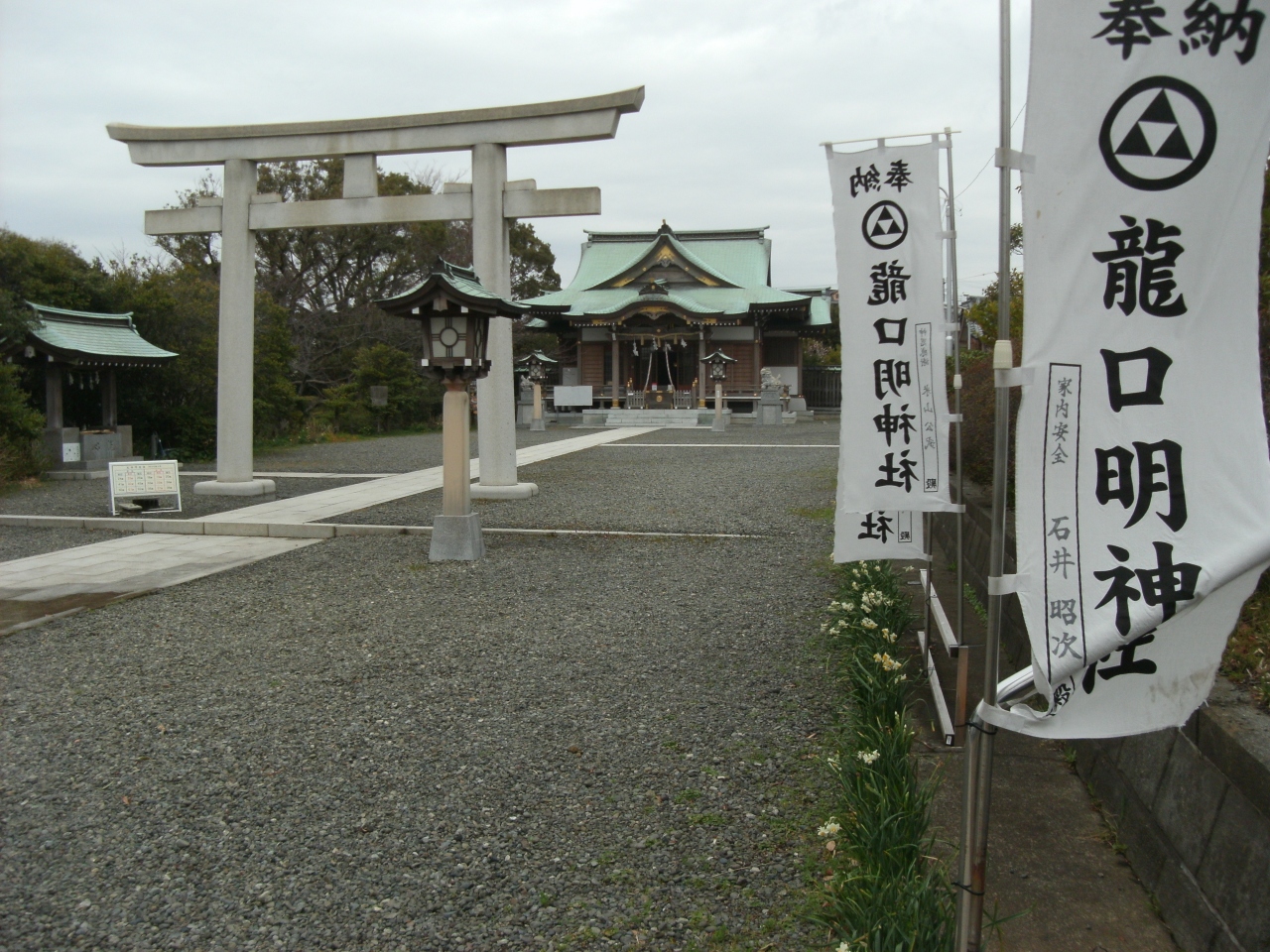 西鎌倉の大きな神社です(神職のある神社)。駅から5分ぐらいの住宅地。鳥居も立派、比較的新しい。それもそうですね昭和53年に移転でこの地にとのことです。片瀬の龍口寺山門西側に同名の神社(腰越1548-4:閉鎖)が元です。江の島伝説「天女と五頭龍」由縁の神社で知られています。観光行楽でここまで足を延ばす人は少ないようです。