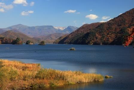 五色沼の東側駐車場のすぐ近くから狭い道を入っていくと秋元湖に出る。