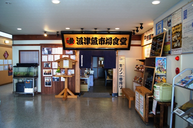 魚市場の2階デッキを通りお店に入りました。デッキの下はセリの場所ですが、お店が営業を始めるころには終了していています。ここには3種類ミニ丼があり少食の私たちにはありがたかったうえ、シラスは絶品でした。平日の昼にはかなりお得なランチがあるようです。10時以降なら市場のトラックヤードに無料で車を停められます。
