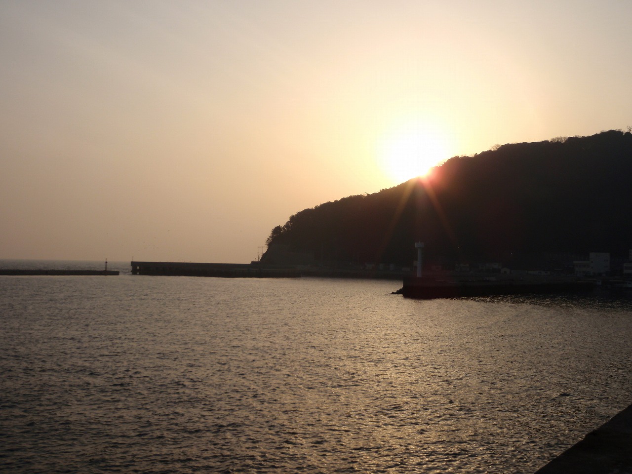 - 港から登る朝日と沈む夕陽が見られないのが残念