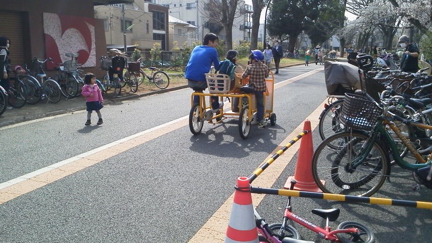 言わずと知れた、東京オリンピックが開催された時に使用された複数の競技場を構えた公園。今回は10年ぶりに訪れたのですが、早咲きの桜にさし割れた市民であふれ、J1のナビスコカップも開催されていたこともあって周辺道路は渋滞・・・。今回特にお勧めしたいのは、ファミリー向けのペアペア自転車。専用コースで200円をとられるのですが、家族向けで非常に楽しそう!