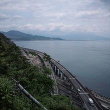 切り立った峠の真下を、東名高速と国道がクロスしながら通り、