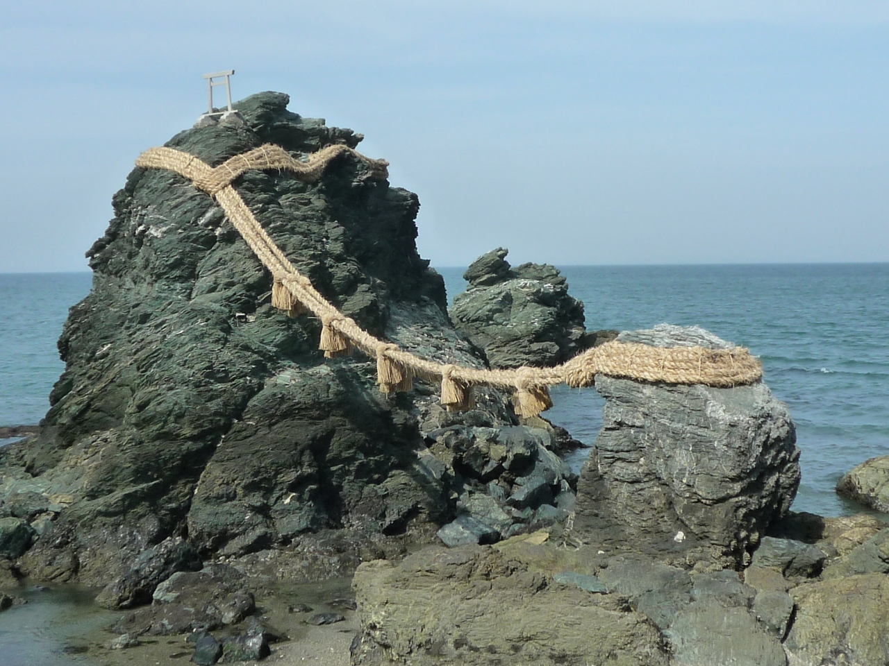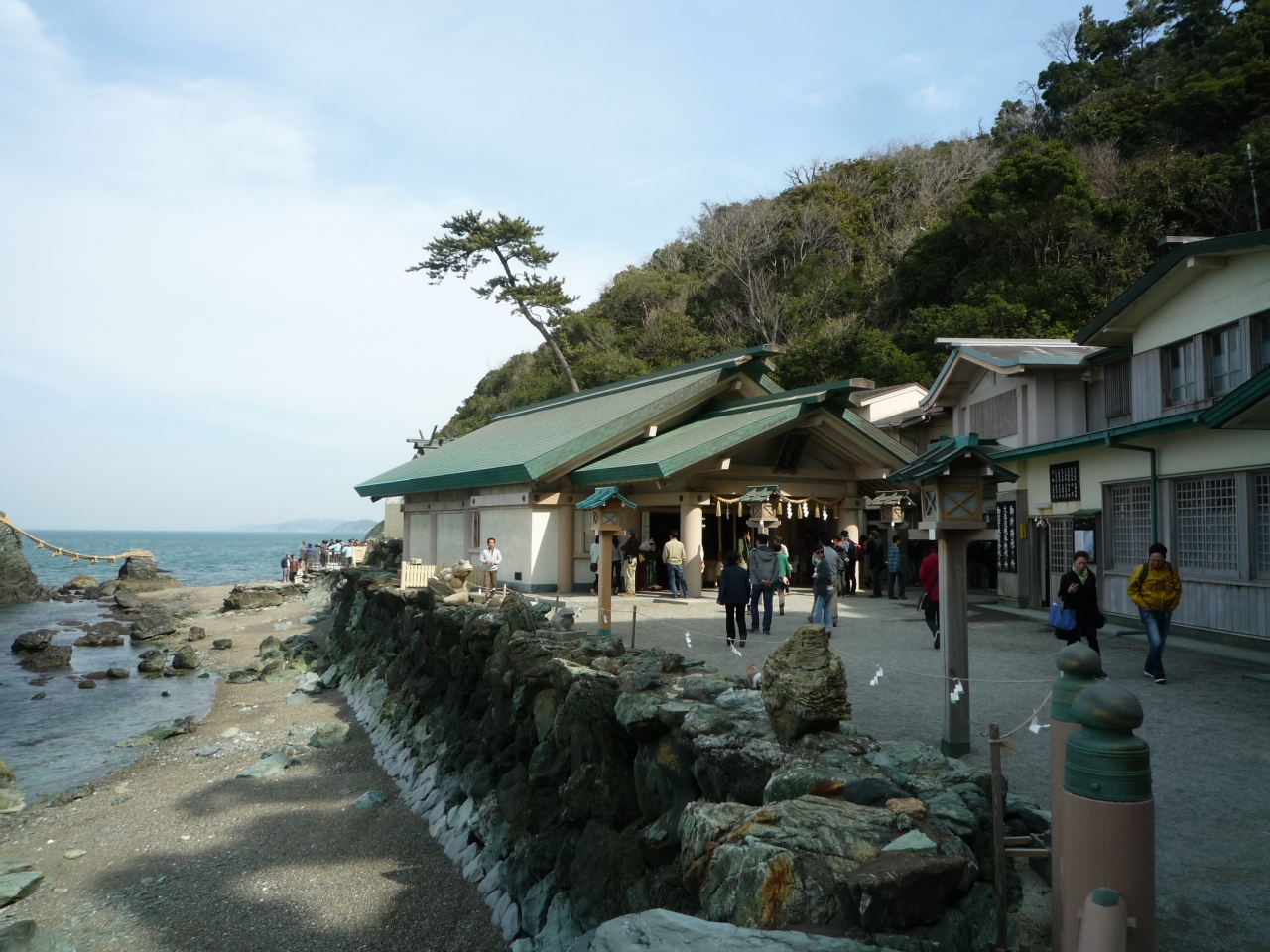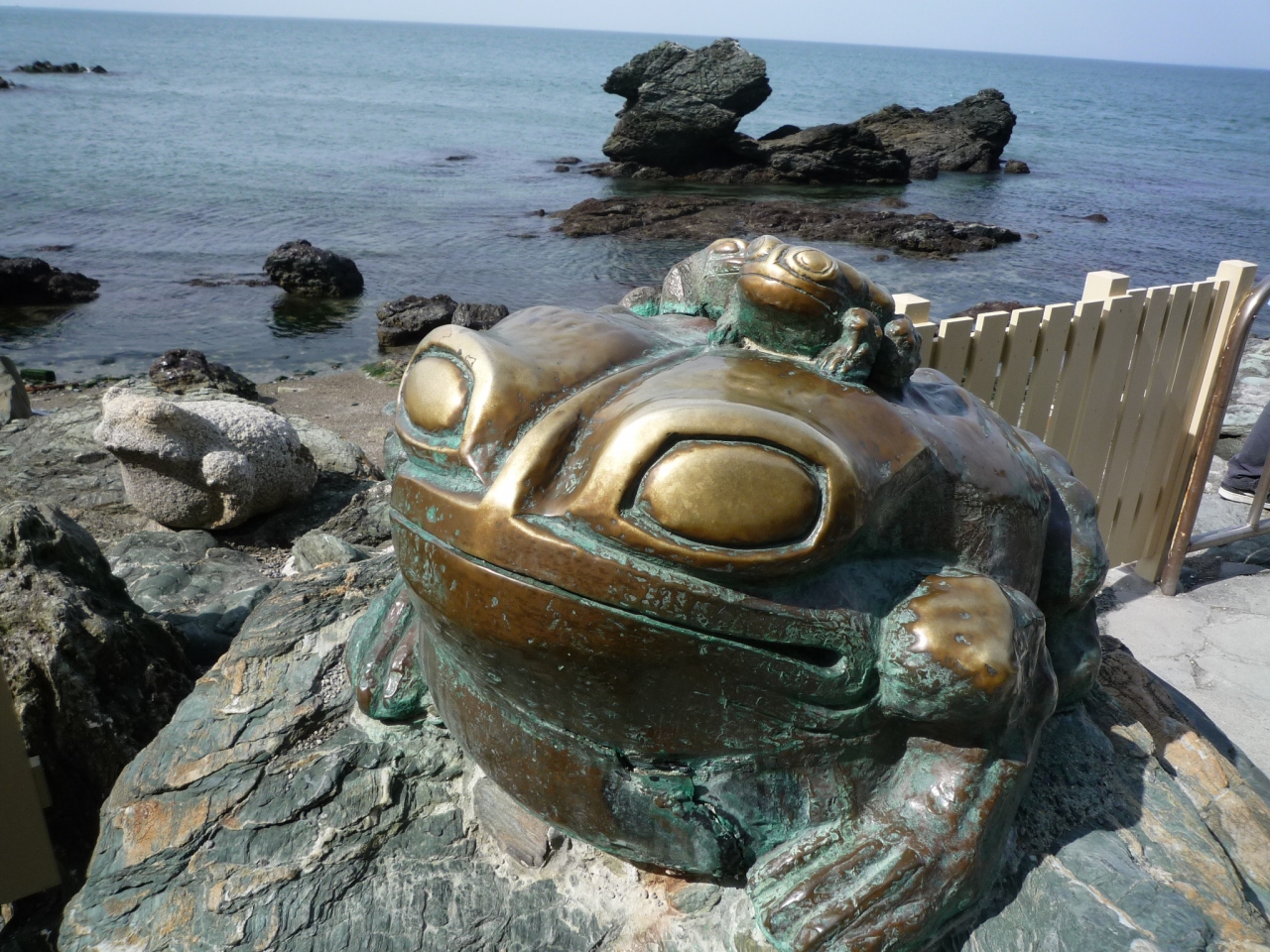 修学旅行で訪問していらの再訪。宇治山田駅よりレンターカーでの最初の訪問地。ナビに従い、夫婦岩と大きく書いた駐車場へ。早速おじさんが出てきて、1000円であるが、1500円のお土産を買えば、そこから1000円引くとのこと。場所の理である。店を通り抜け海岸に行くと、右手方向に歩いていくと、夫婦岩にたどり着く。神社には、そこらじゅうにカエルが置かれていた。信仰心の一つである。