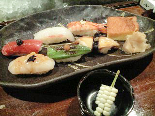 お寿司は、牛ロース、真鯛、蒸し海老、玉子、オクラ、穴子など。