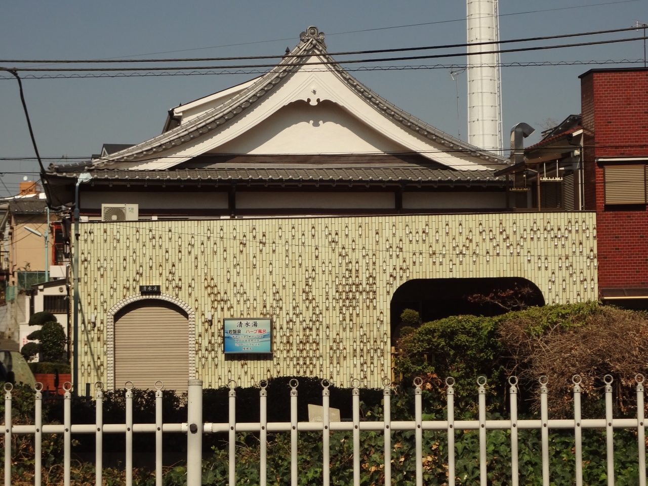 本蓮沼には有名な温泉が2つあるのですが、この清水湯は温泉ではなく普通のお風呂です。昔ながらの瓦屋根と煙突の店構えで目を引きます。風呂桶も昔ながらのケロヨン桶です。回想されているらしく、中は外観ほど古い感じはありません。普通の大衆銭湯です。