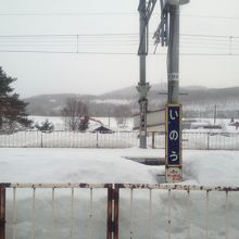 駅名の由来は、アイヌ語の「イヌン オ ペッ」で、鮭を獲るための小屋がいくつかある川という意味の言葉からです。