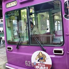 ちょっとこじんまりした感じの電車で、江ノ電のような感じの印象をうけました。嵐電の嵐山の駅は足湯があったり、貸切電車とかもおこなっているそうです。嵐山まで行くのにJRよりもこちらのほうが駅にカフェなどもありますし、きれいでおすすめです。