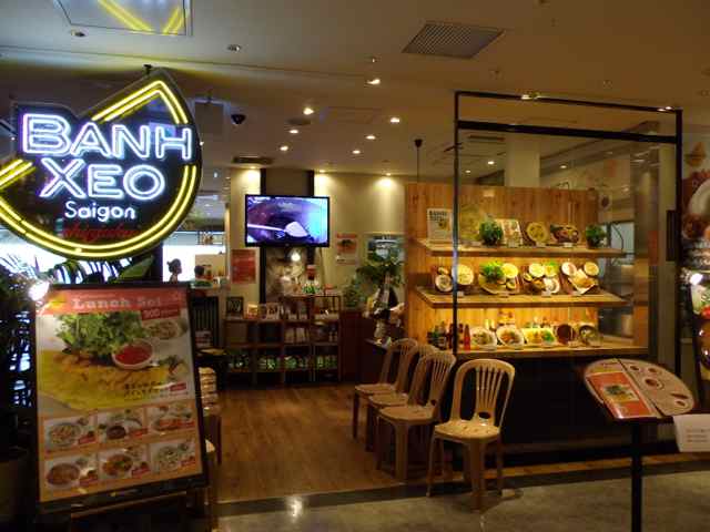 平日夜の仕事帰りに友人と行きました。2人とも酒をあまり飲まないので、安く美味しく食事ができるところを探して行きました。新宿ミロードの9Fなので新宿南口からは直結と言っていいと思います。店内はファミレス風で広くてキレイですが、料理はしっかりベトナムです。数種あるバインセオから1つを選び、生春巻きとスープの付いてくるセットを選びました。バインセオ自体も美味しいですが、一緒に巻く野菜(ハーブ)のお代わりが1回無料で出来るのが嬉しい!野菜でお腹いっぱいになります。夜に、ランチ並みの値段で味も量も満足できます。またランチ、ディナー間のクローズがないので、遅いランチ、早めの夕飯にも便利です。