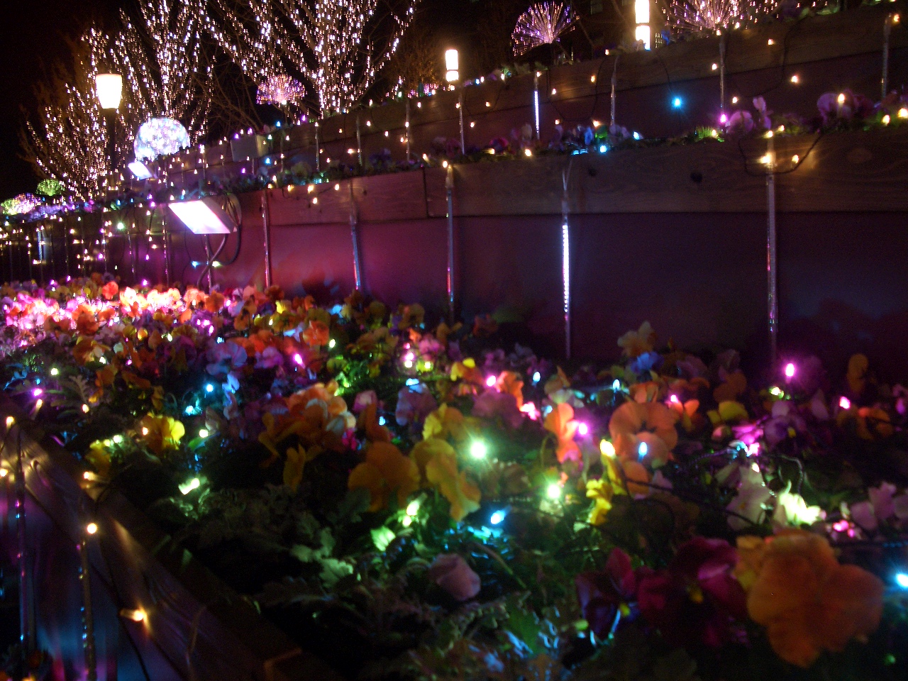 2011年は花をカラフルな照明で照らして華やかでファンタジックでした。