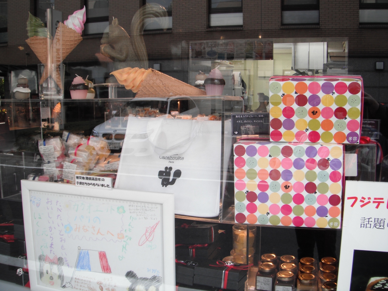 こちらでおさえるのは、何といっても四角いシュークリームでしょう。本当に一辺が5cmほどの立方体で、上面に薄い板のチョコレートが乗っています。ベーシックなバニラが\380、各種アレンジされたものが\420。