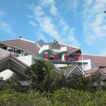 いかにも沖縄っぽい石造りのテーブルとベンチがあって