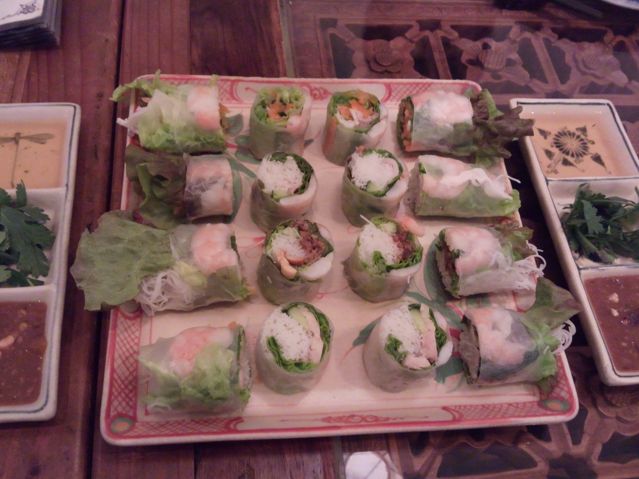 トマトの肉詰め、生春巻き、青パパイヤのサラダ、空心菜のニンニク炒め、スペアリブ、豚肉のこしょう煮、ごはん・・・この他にもまだ色々あったのですが、途中からアルコールもまわってきてメニューの名前を憶えていません^_^;
