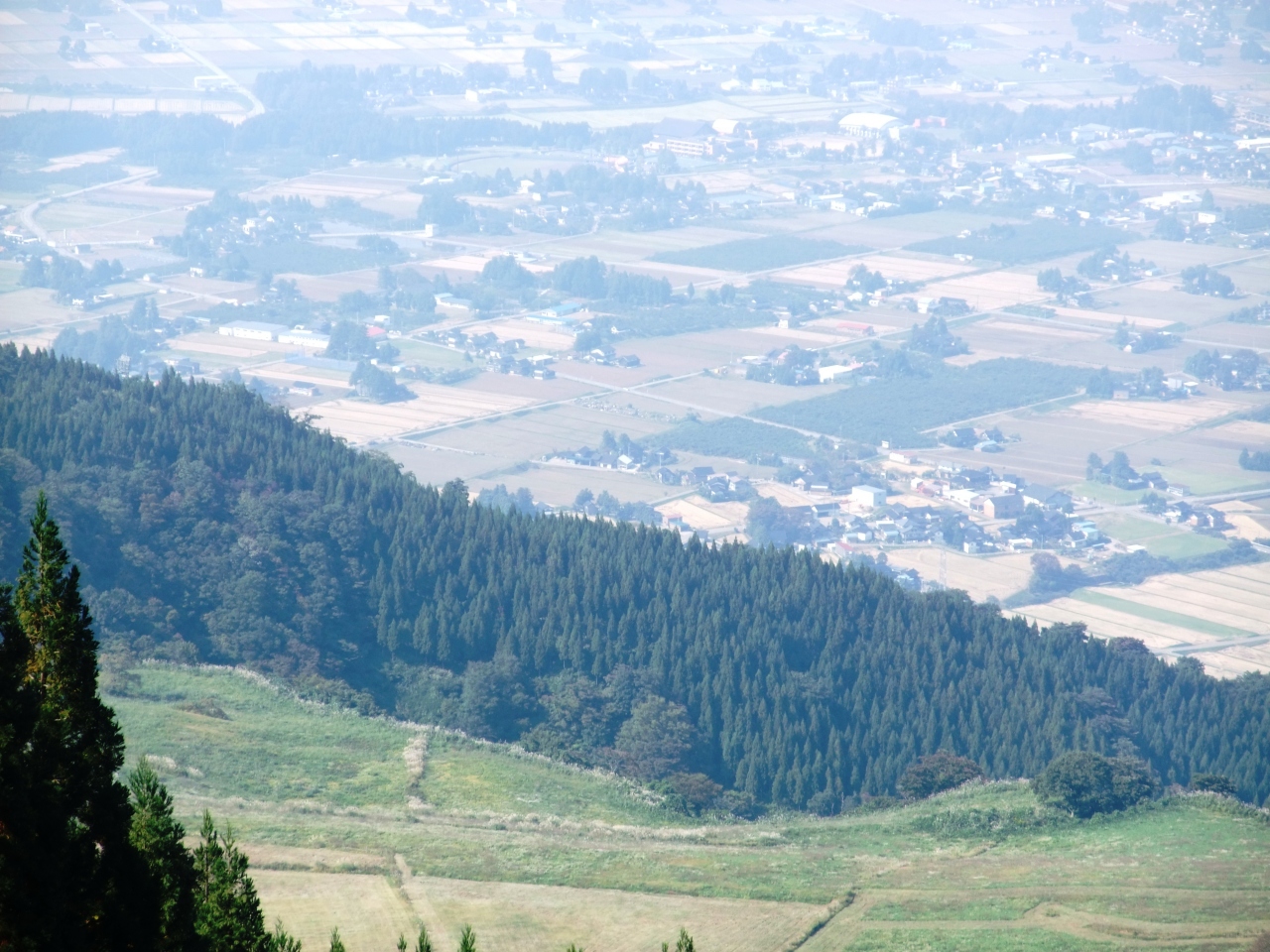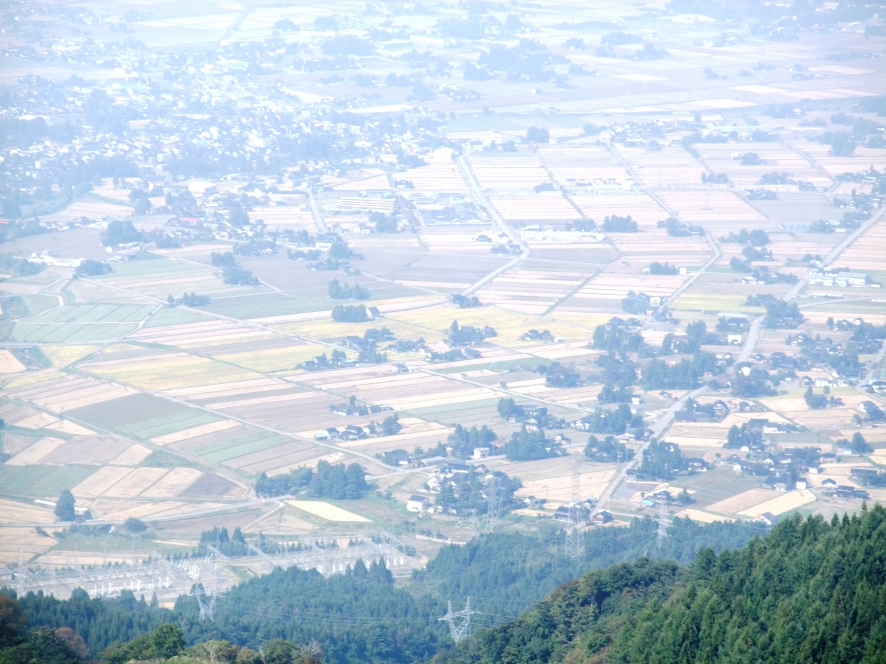 つくばね森林公園展望所からは、散居村と呼ばれている砺波平野の有名な風景が見えていました。田の中に点在する屋敷林に囲まれた家々が特徴的でした。