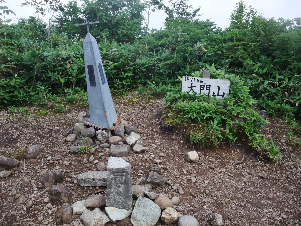 そして二回目、登りだして三十分の所で豪雨にあい中止、麓の五箇山に泊まって、翌日再び挑戦、三等三角点のある大門山1571.6mの頂上に立ちました。