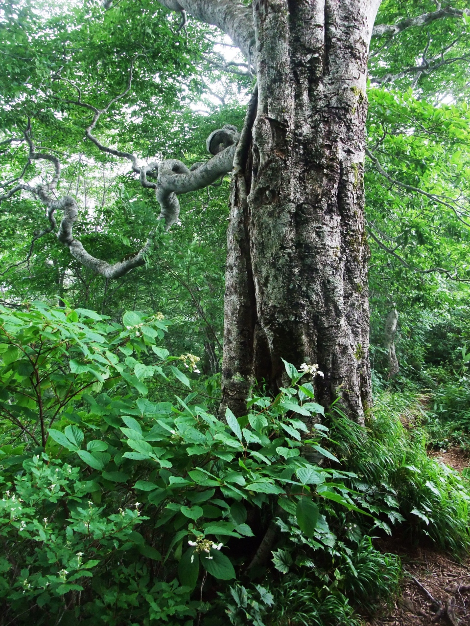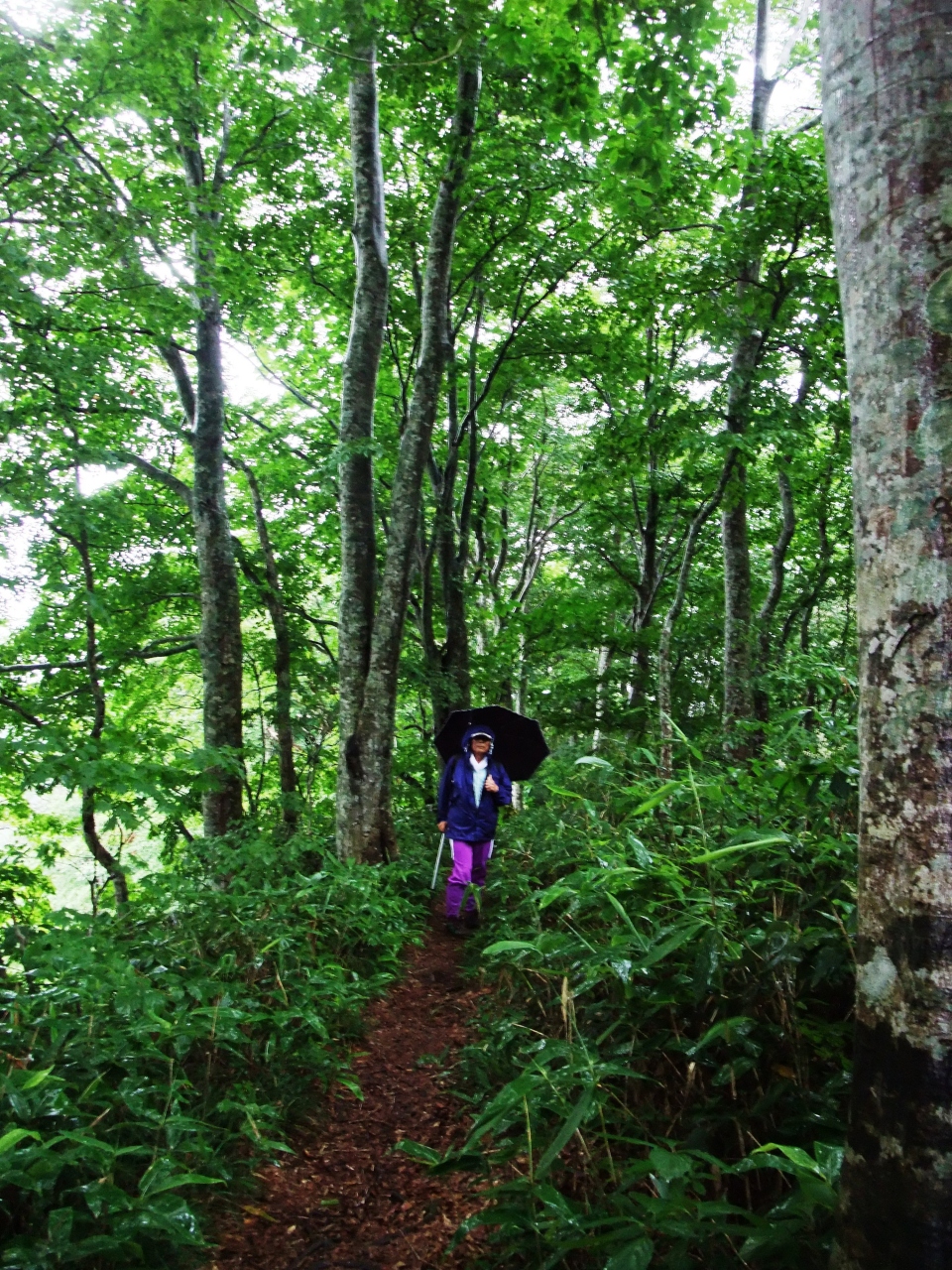 この日も昼前から豪雨になりましたが、朝から登っていたので、下りの三十分ほど雨にあっただけです。虫は多いけれど、ブナの美しい山でした。