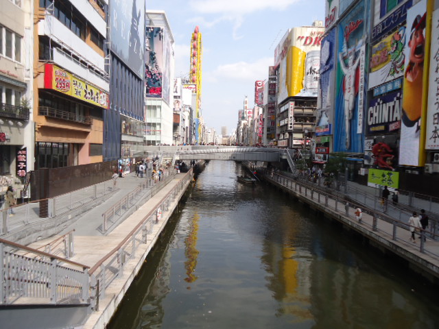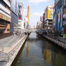 道頓堀橋は御堂筋の橋です。橋から有名なグリコのネオンサインやその他巨大ネオンサインが見ることができます。橋からリバーサイドウォークへ降りることができ街並みを散策することができます。昼と夜とで風景が全然違うので両方行かれることをオススメします。