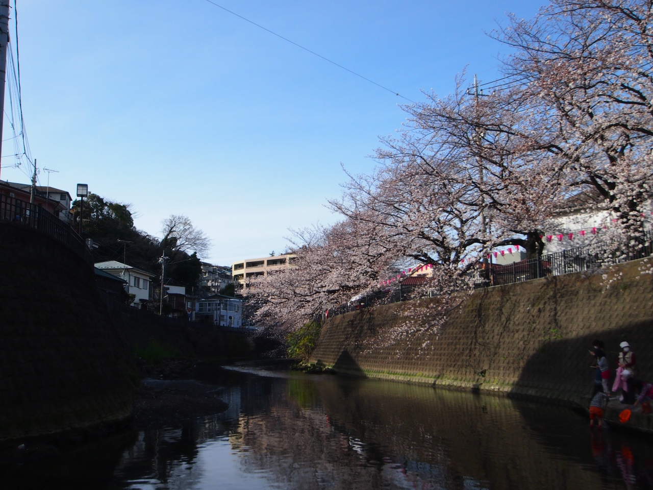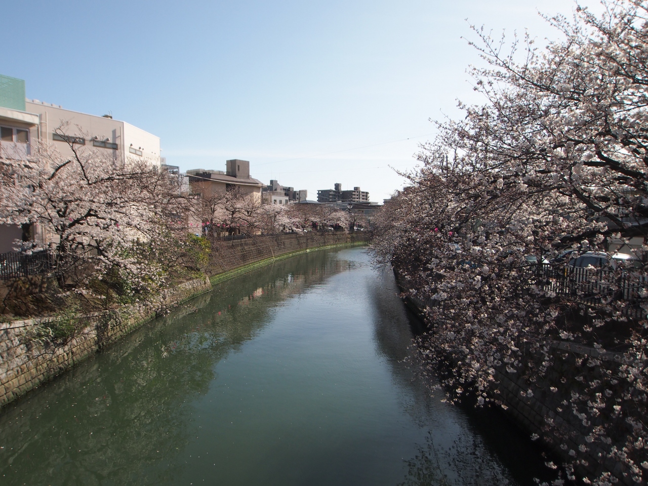 また、上流に行けば行くほど川幅が細くなるので桜の枝が川へ流れ込む姿は素晴らしいです。