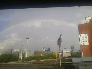 夏のある日、ホームから雨上りの空を見上げたら、虹が出ていました。