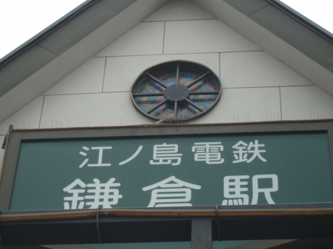 丸いバラ窓・ステンドグラス窓・・江ノ電駅舎、見てください