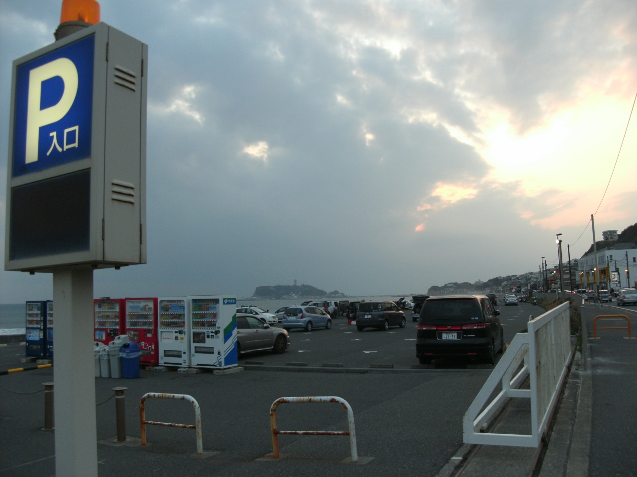 七里ヶ浜の浜辺は大きな駐車場が占めています。七里ヶ浜パーク&レールライドがあり、鎌倉・江の島が車観光し難いために、ここに駐車し観光スポットに出かける拠点。交通機関のフリーキップセットなどあり便利です(夏シーズン以外)。