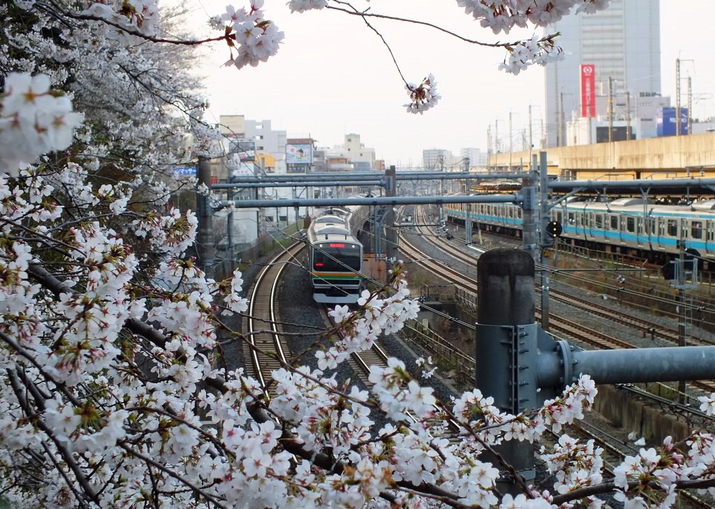 王子駅南口と結ぶ跨線橋も人気のポイントで、家族連れが桜と列車を併せて見物する光景をよく目にする。