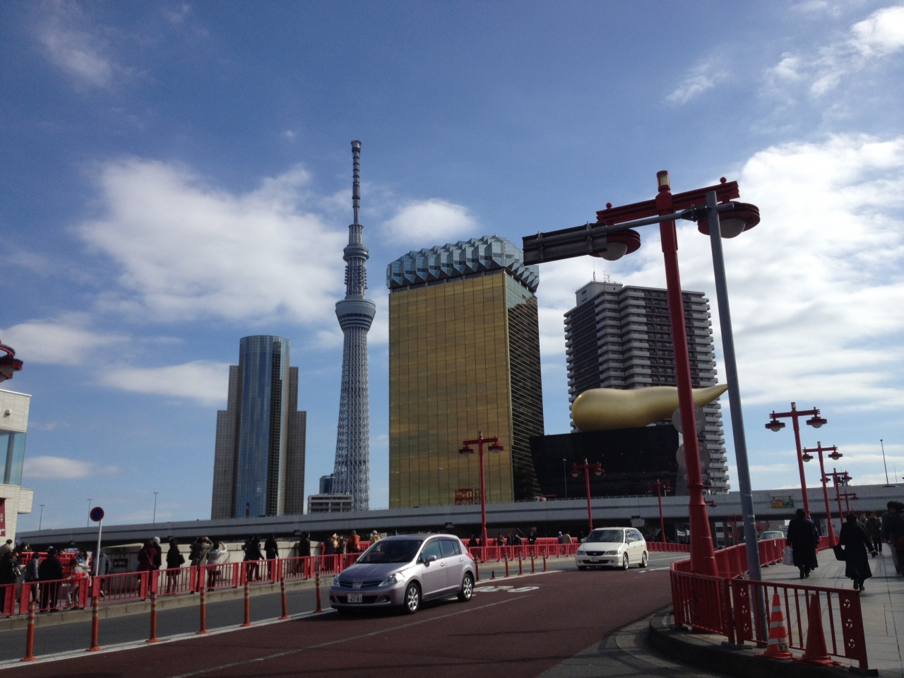 いろんな方向からスカイツリーを見れますが、浅草から見るとまわりに高い建物がなく、きれいに撮れました。隣の金色の建物のほうが珍しい?