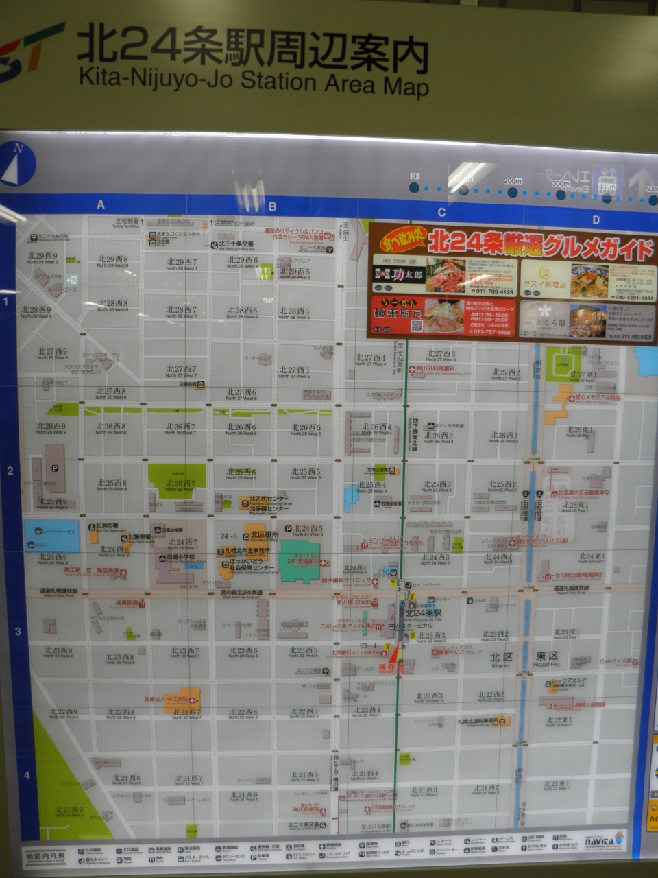 札幌地下鉄南北線の北24条駅にの近くには、北区役所や保健センターなのど北区の役場関係が集まっています。また、コンサートホール、コンベンション、宿泊施設や屋内温水プールなどが入った札幌サンプラザがあります。 北のすすきのとよばれていたこともあり、小さな飲食店などがたくさんあります。 一体にすすきのより料金安めなきがします。