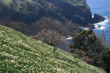- 日本海と水仙・斜面を覆う水仙と言った具合に見ごたえあり