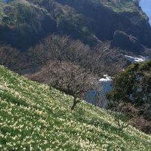 越前岬まで足の延ばすと海岸線にもところどころに水仙畑が見られます。
