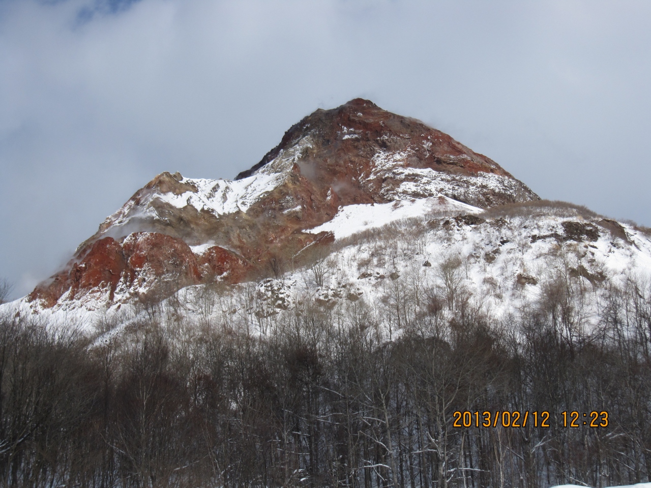 地面からこんもりと盛り上がった小さな小山。ただ普通の小山と異なるのは、山肌が全くのむき出し状態、樹木や草が見当たらない。それに中腹の数か所から水蒸気が吹き上がったおりまた山肌が鉄さび色をしている。地球の息吹がここに吹き出ていて、感動した。