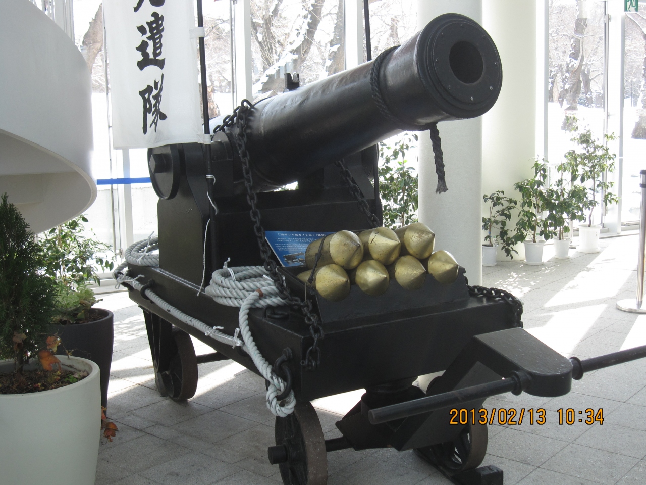 高さ105メートルの展望タワー、函館市内を360度眺望できるのは圧巻だ。また五稜郭公園を眼下に見ることができる。タワーの展望所には、五稜郭にもっとも縁がある土方歳三のブロンズ像が展示してあったり、函館戦争時の大砲が陳列してあった。展望タワーからの景色を見ていただきたい。