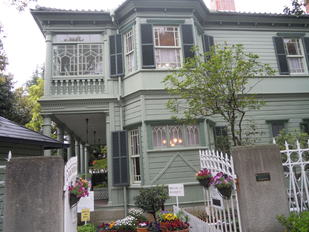 修理で建築当時の淡いグリーンの外壁に復元されて、