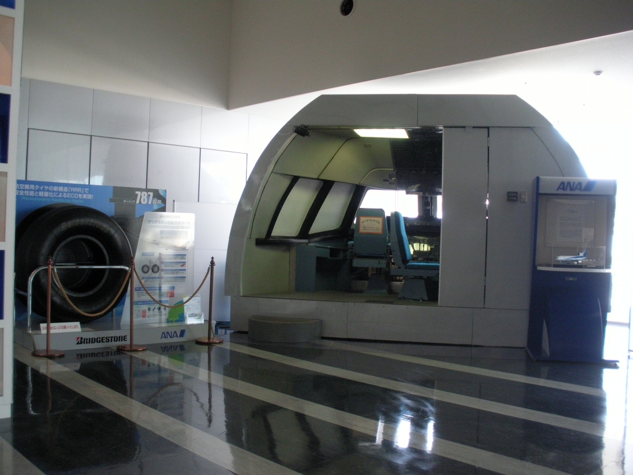 ロビーにはコクピットやANAグッズの売店などがあります。また、事前予約している分、案内板に予約者の名前が表示されます。