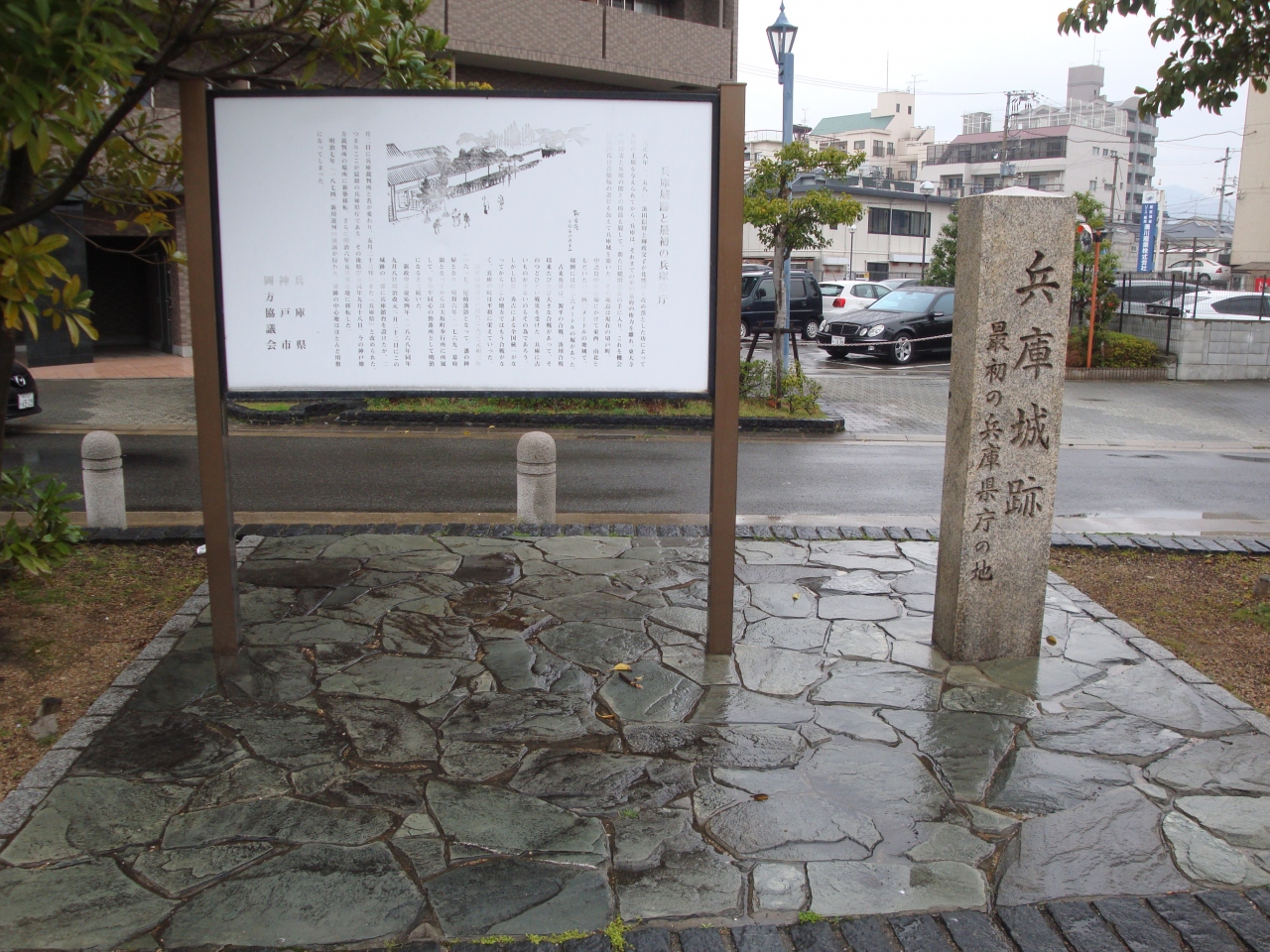 天正8年(1580年)この場所に城がつくられ、明治時代には、最初の兵庫県庁となったそうです。(碑にも「最初の兵庫県庁」と書かれています。)