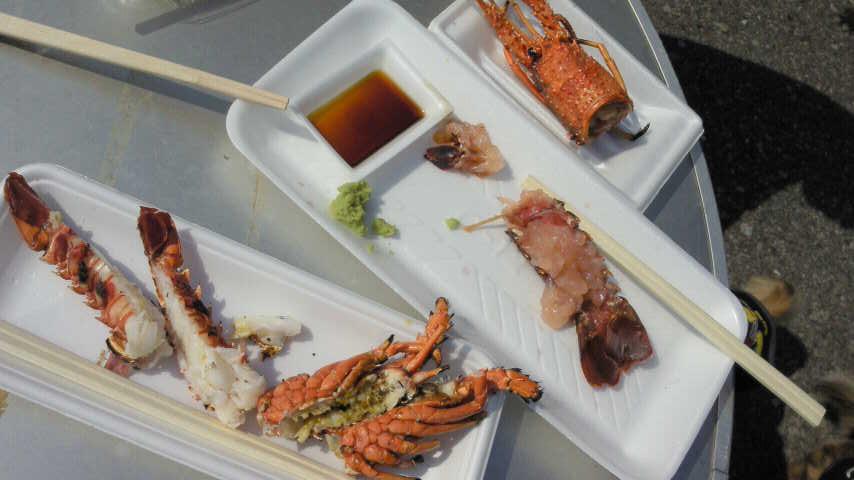 自分でつかんで食し方も決められる!@伊豆山伊勢海老祭り。