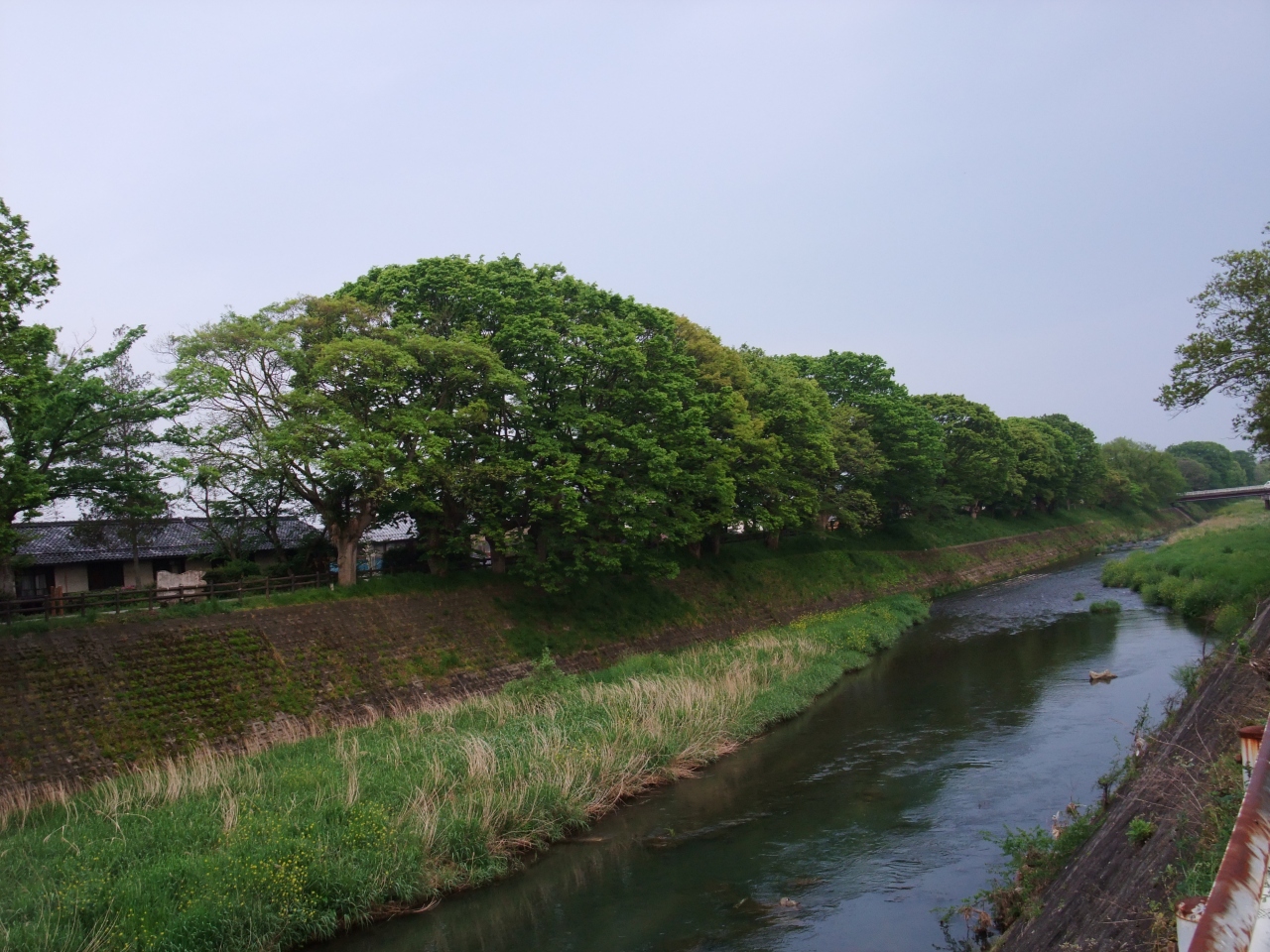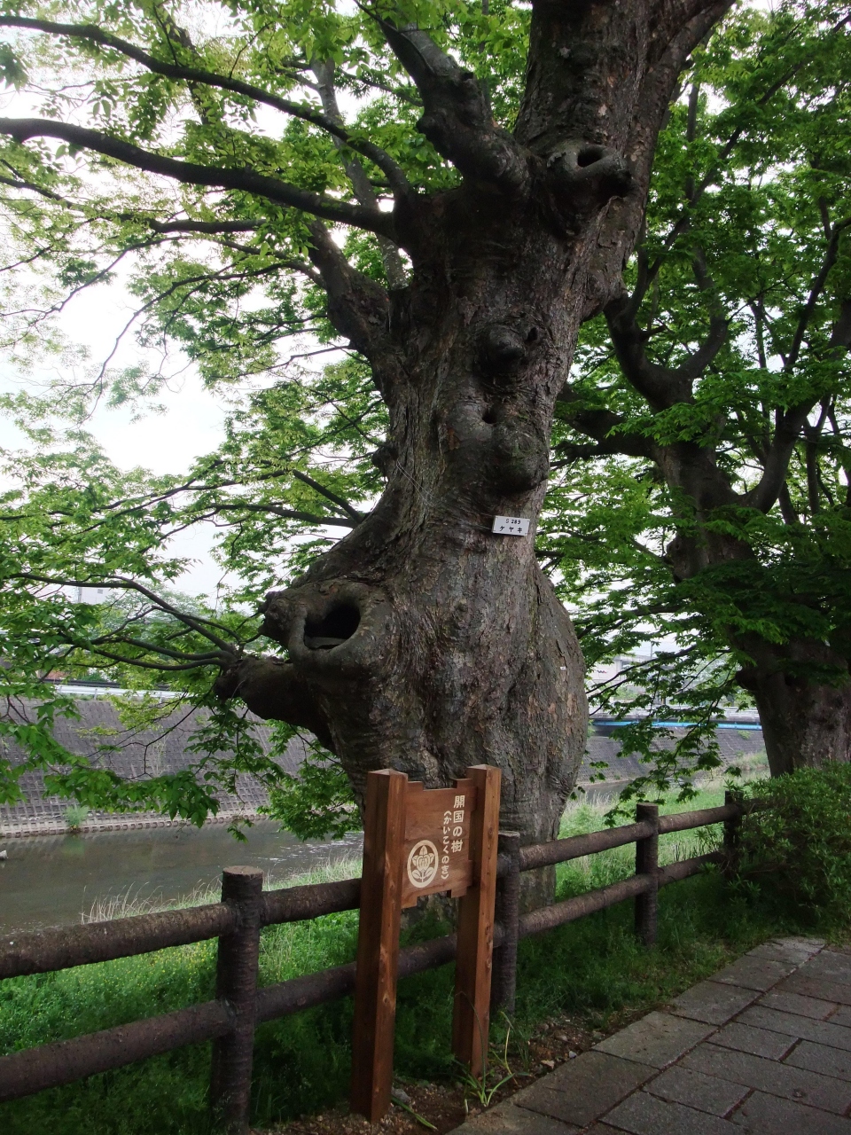 芹川の土手には彦根八景に数えられるケヤキ並木があります。堤防に沿って続くケヤキ並木の木々はどれもかなりな巨木です。彦根城築城の際に、防護堤用に植えられたものだそうで、樹齢は400年になるのだそうです。
